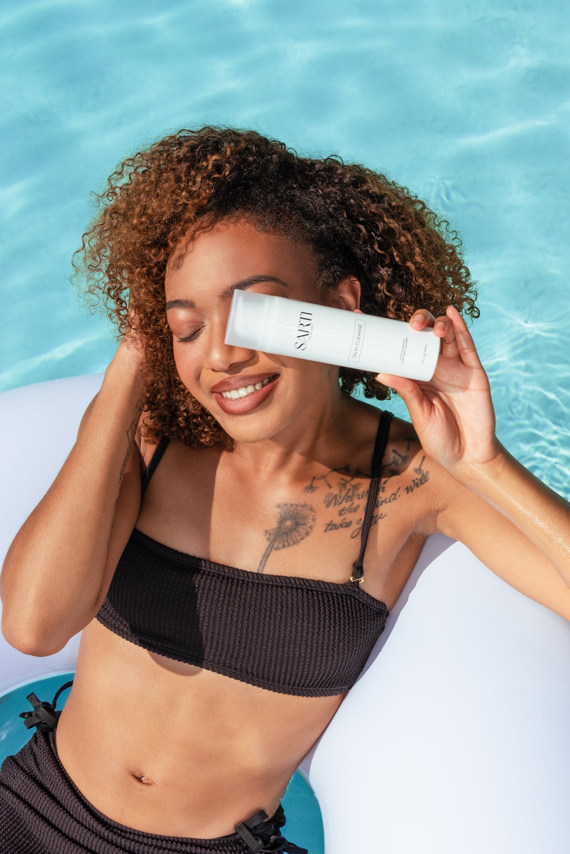 Calm Cleanse gently cleanses off dirt, makeup, and oils without stripping or drying the skin. It's ultra-hydrating and repairs your skin's natural barrier with eight different antioxidants. It has a luxuriously creamy texture that doesn't feel greasy. Acne safe and free from pore-clogging ingredients.